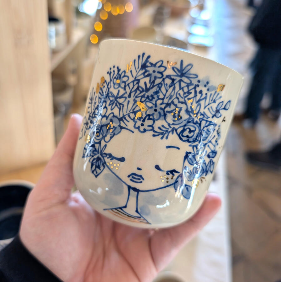 Chaque création est unique, façonnée dans mon atelier en Belgique, avec tour de potier et cuissons sur place. Mes collections principales – Gingko, Capucines et Visages Fleuris – se déclinent au fil des saisons avec des inspirations variées : cerisiers japonais, tournesols champêtres, Noël enneigé… Je réalise aussi des projets personnalisés, selon vos envies de taille ou de couleurs.Mon processus créatif